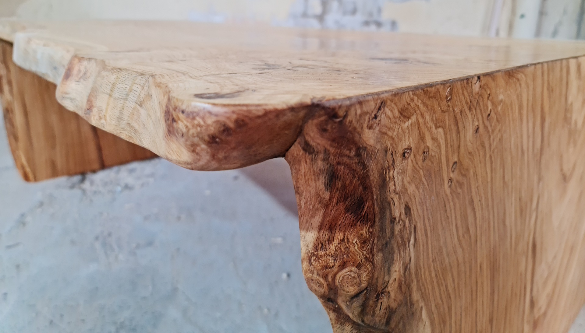 Sophie from almost 200-year-old oak. It was drawn by nature and we are very impressed every time. Oak is a big favorite of mine. I really can not say which is my favorite. I really like the way it hardens while working. The end result is a stone-hard, shiny, marble-like surface. This log is the most interesting oak log I have come across so far. It presents some wonderful patterns and surfaces from each of its pages. It was decided by the wind because it came from the opposite direction much stronger than it was used to for nearly 2 centuries. It formed such an impressive pattern by tilting and twisting in one direction. He struggled with the forces of nature for more than a century, until a huge storm knocked him out from the opposite direction. Thanks to this continuous twisting, the unusual pattern was created.